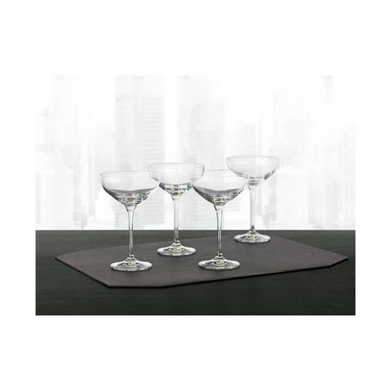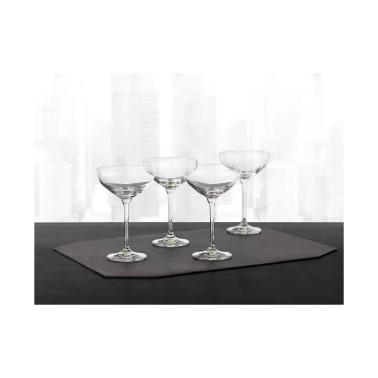 Slender stems and wide bowls create the classic style of the Hotel Collection champagne saucer set, a timeless testament to good taste.