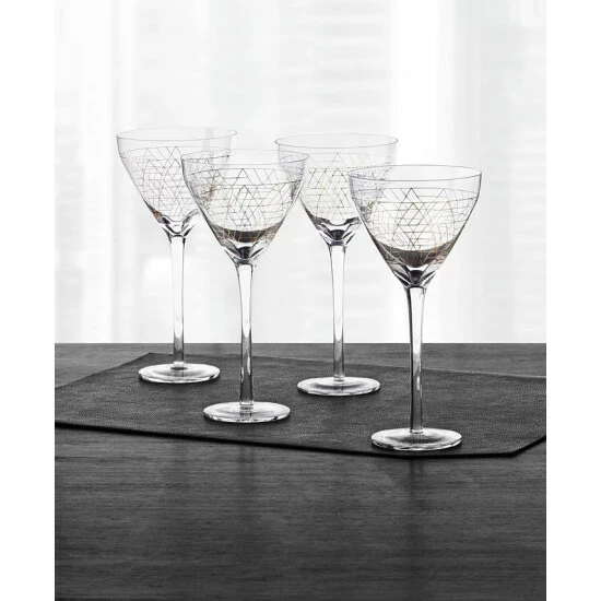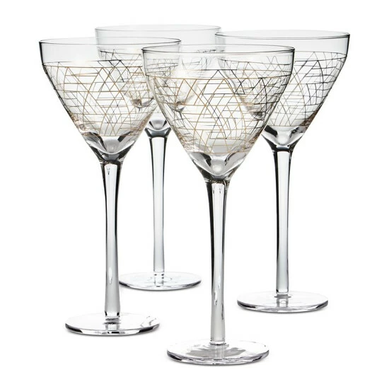 Toast the good times ahead with this set of four martini glasses from Hotel Collection. A gold-tone decal motif encircles the stylish shape, adding elegance to special occasions.