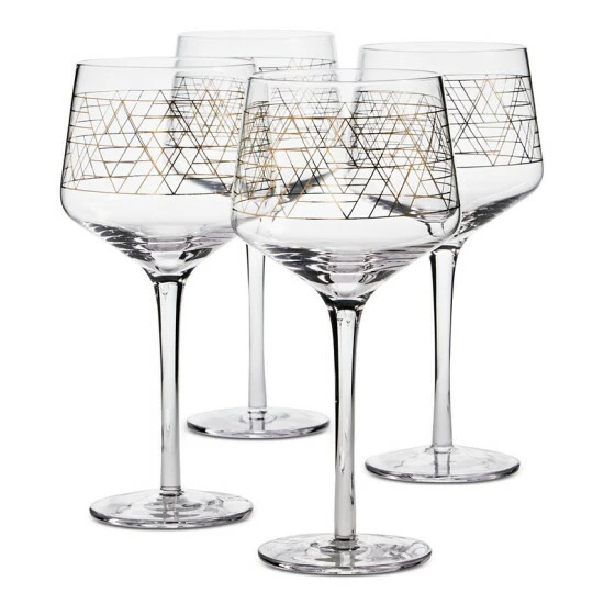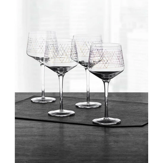 Entertain in style with this set of four wine glasses from Hotel Collection, each featuring a sleek silhouette with a gold-tone motif for a touch of elegance.