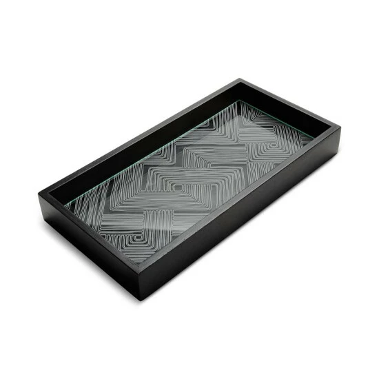 Enjoy serving in dramatic style with this Wood & Glass Serve Tray by Akwaaba Inns for Hotel Collection. Handwash wood, this serve tray feature a high-contrast black and white graphic design.