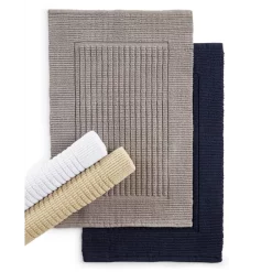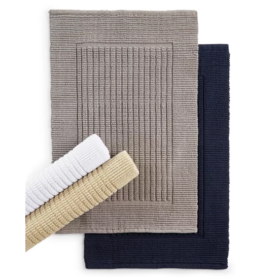 Add soothing comfort for your feet with the Striped Woven bath rug from Hotel Collection, featuring a soft cotton fabric and woven rib design.